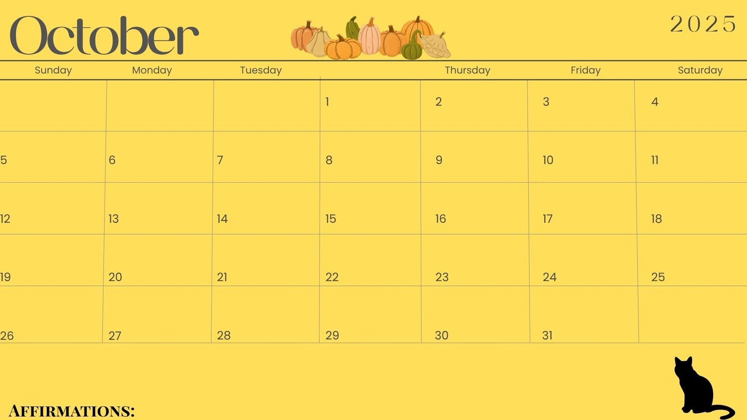 A printable calendar to write your daily affirmations, reflections or intentions.