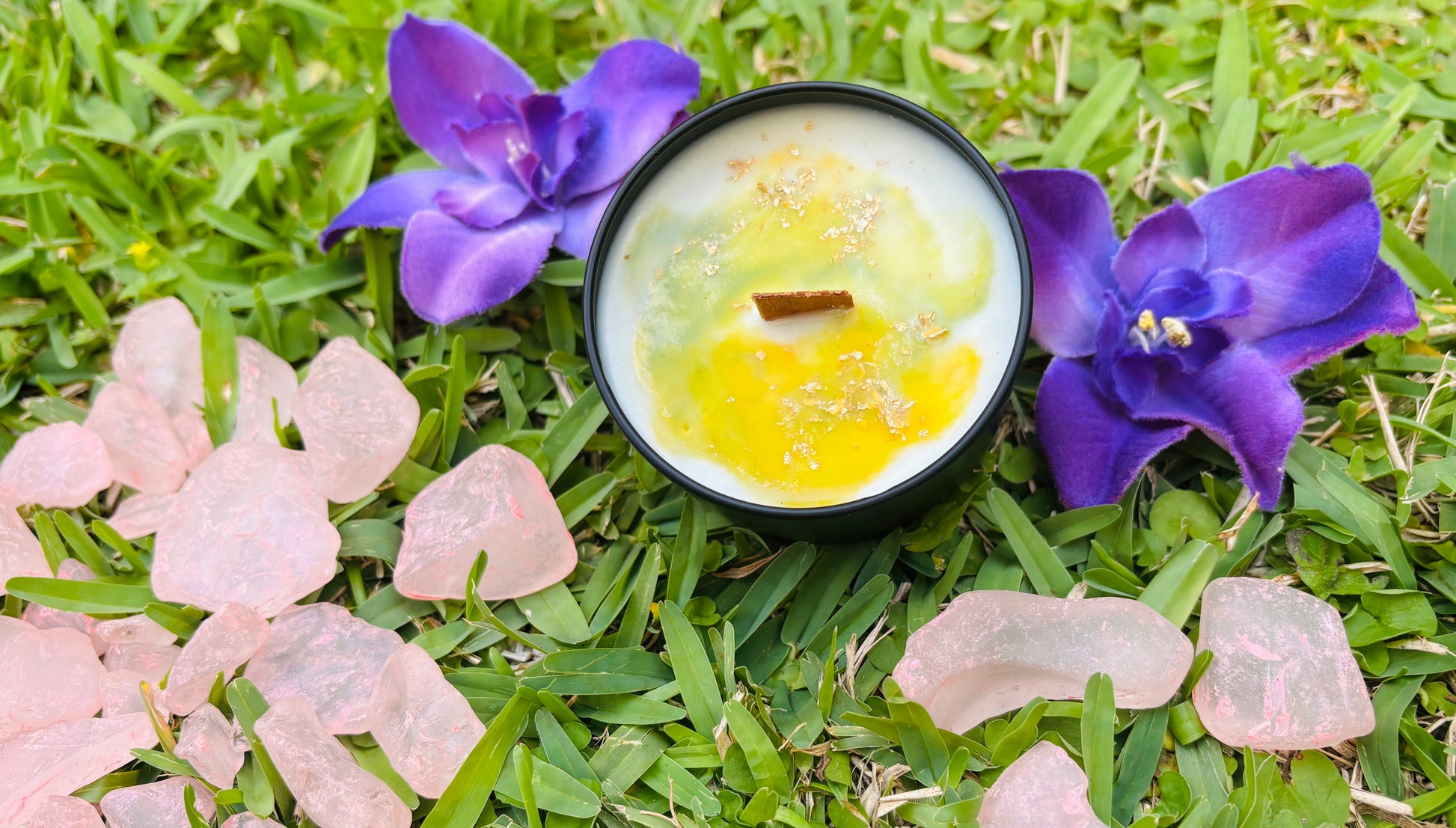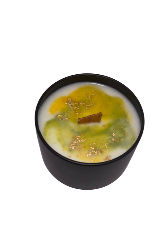 Each candle is topped with shimmering gold flakes, a visual reminder of your inner light and the abundance you are worthy of receiving.
